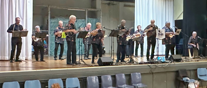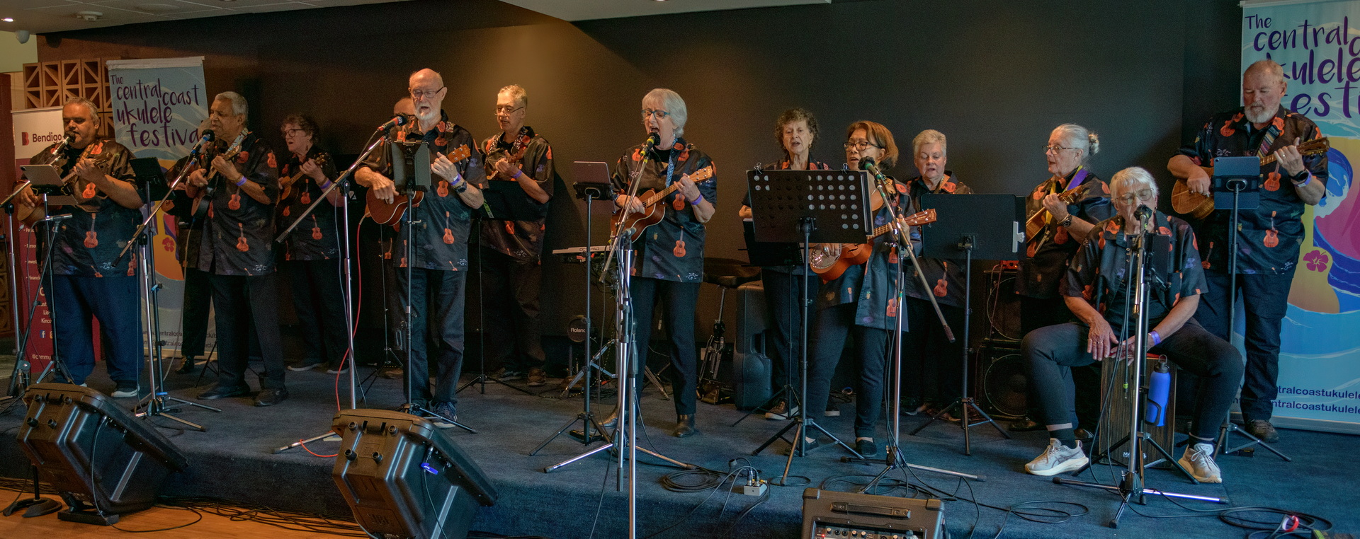 On stage at the 2022 Central Coast Ukulele Festival. Photo courtesy of Ian Munro.